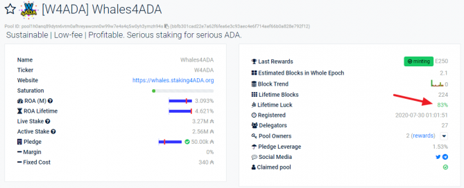 But somehow W4ADA has been suffering from very unlucky slot leadership allocation all throughout its life, as demonstrated by its very low “luck”-factor on Adapools.org, and resulting in a lifetime ROS that does not meet our standards:
